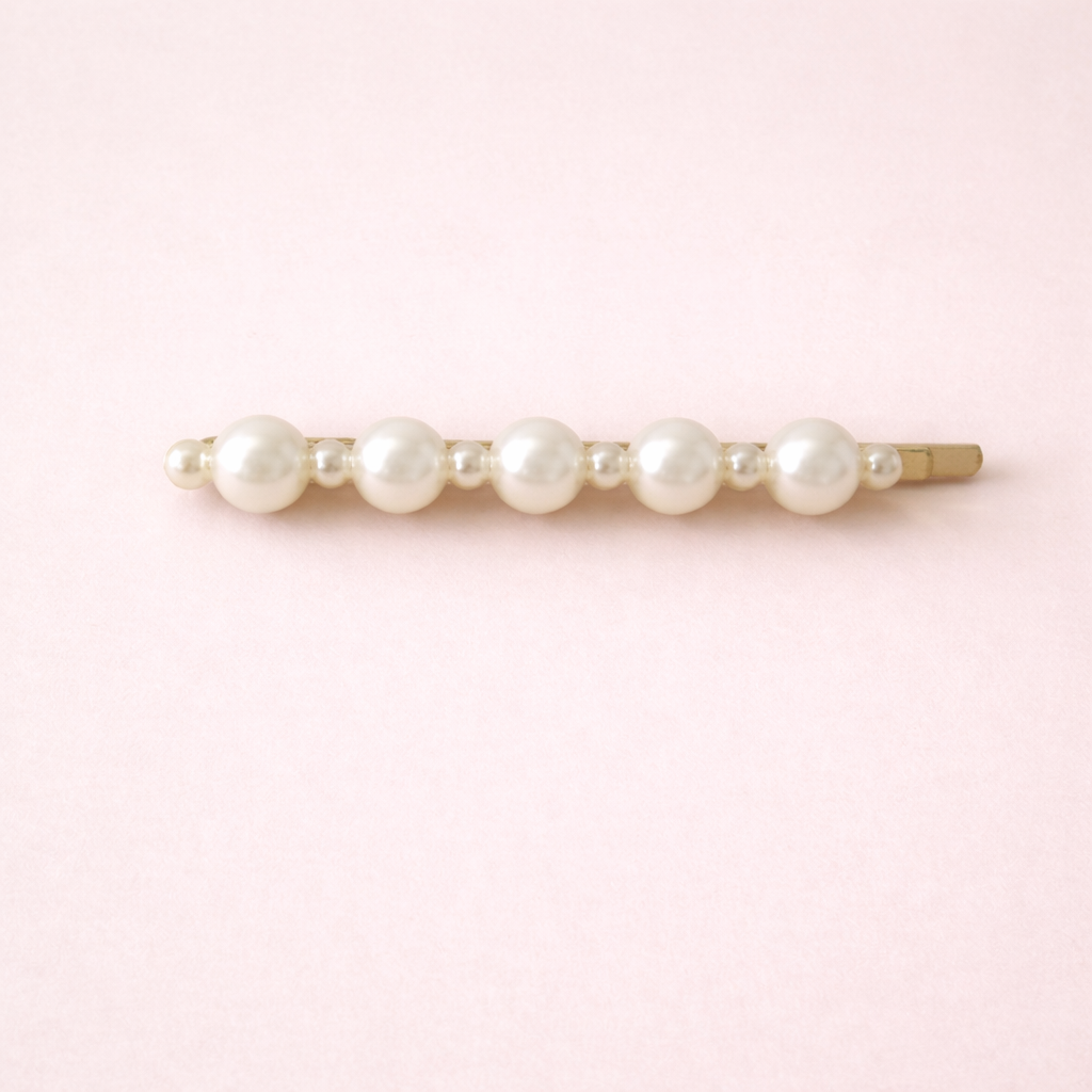 A luminous pearl bar clip available in three sizes (approx. 2.6”, 3.4”, and 3.8”), designed to add timeless elegance and dimensional shine to any hairstyle.
