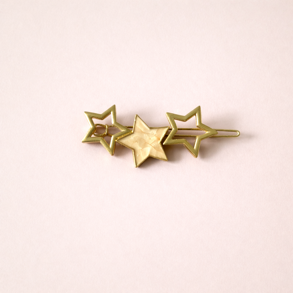 A sleek triple-star gold clip measuring approximately 2.5 inches, designed to add modern celestial shine with effortless structure.